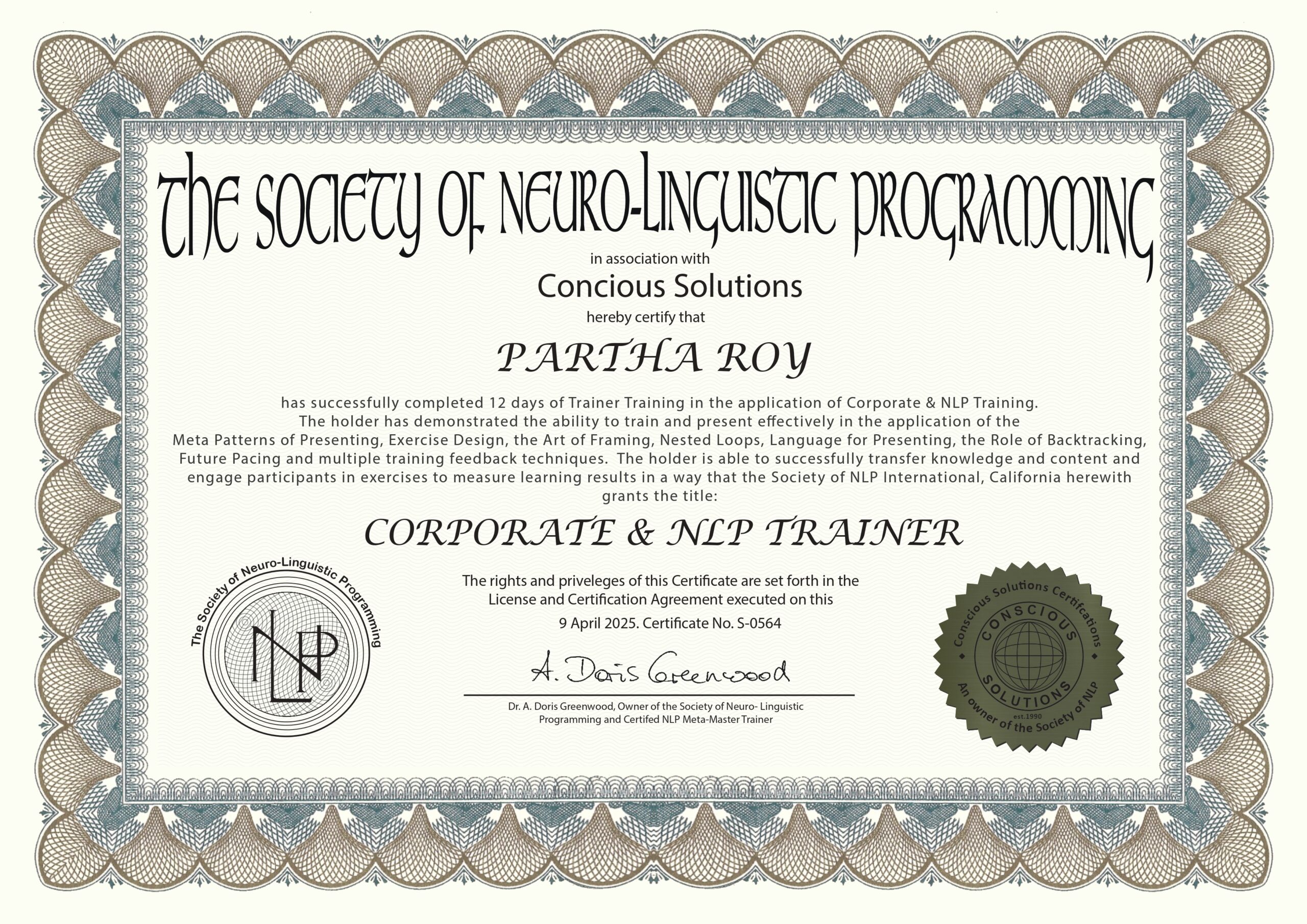 – NLP Foundation is sufficient for Corporate Trainer certificate